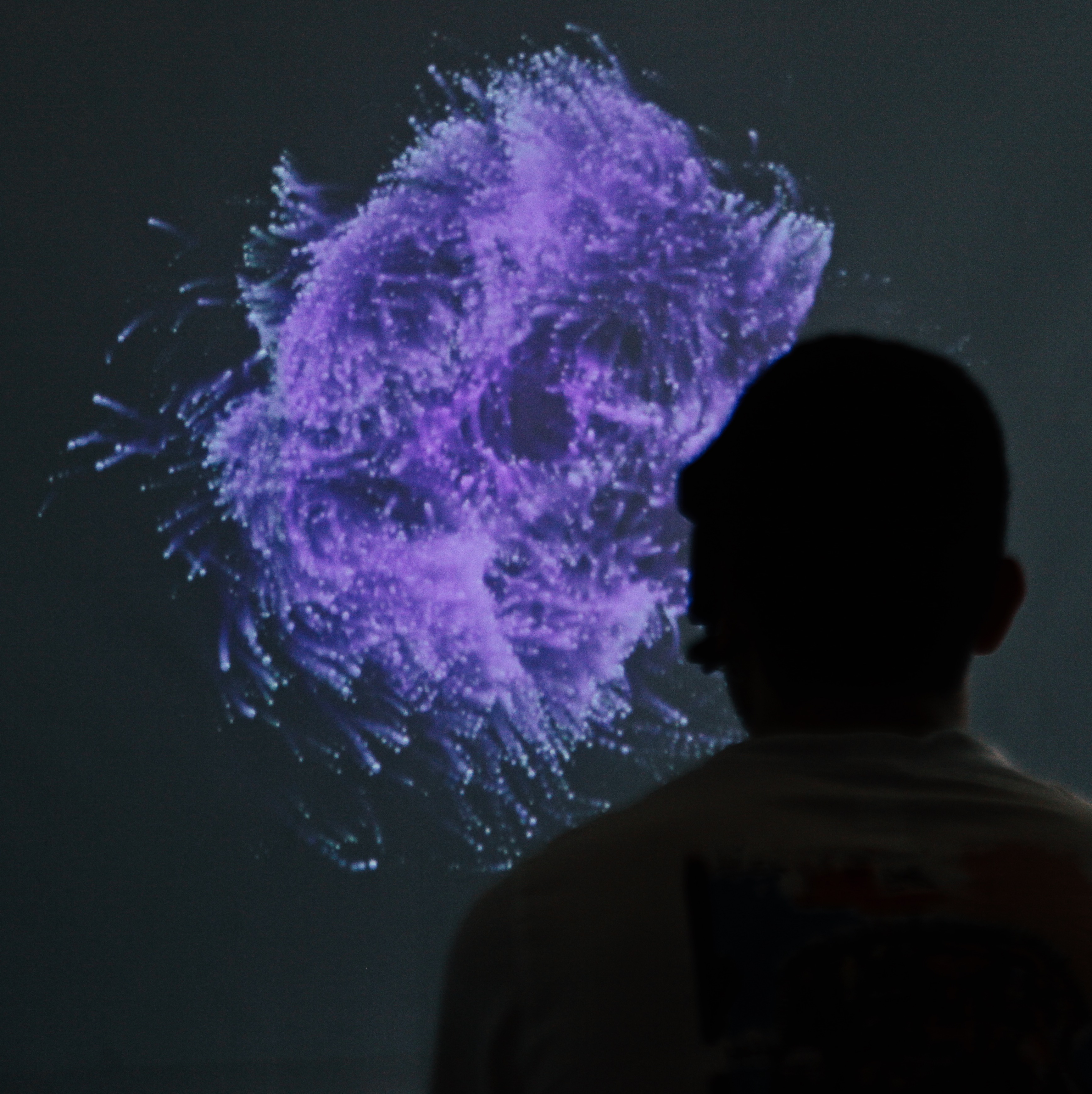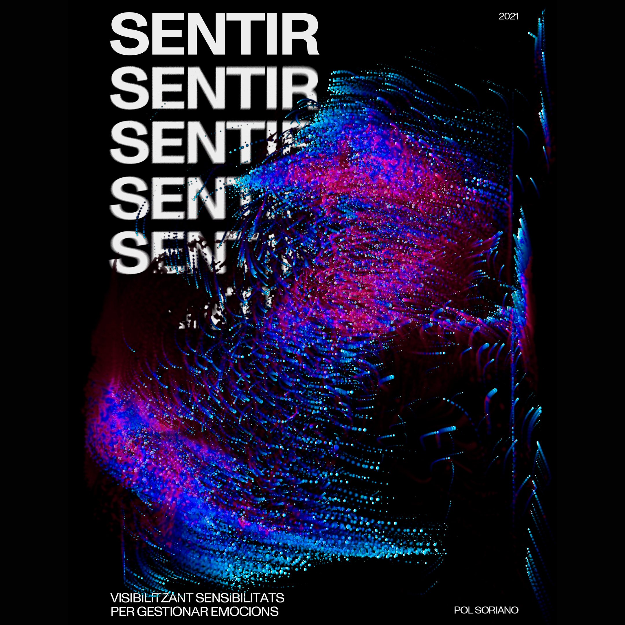 Sentir, brings to light the sensory receptions and reactions that our body experiences when changing our emotional state. We will vary, modify and give life to non- gurative animations, projected and visualized in real time through the use of a brain sensor that analyses the activity of our brain when listening to di erent kinds of music. The goal of this exercise is to gain knowledge of the stimulus we really feel or what our brain is really afected by.
